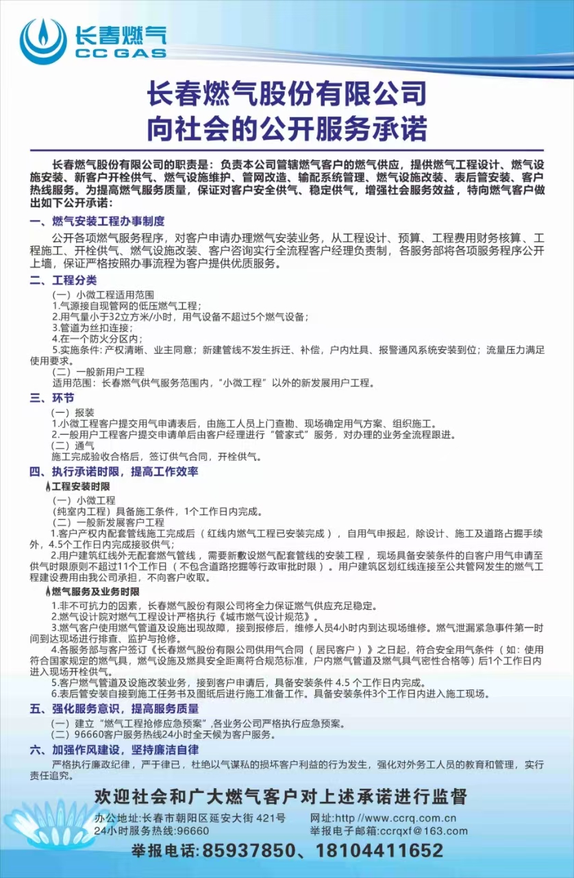 長春燃氣股份有限公司向社會的公開服務承諾,詳情請見附件!